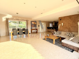 Le vaste espace de vie s’ouvre généreusement sur les terrasses grâce à de larges baies à galandage, effaçant les frontières entre intérieur et extérieur.